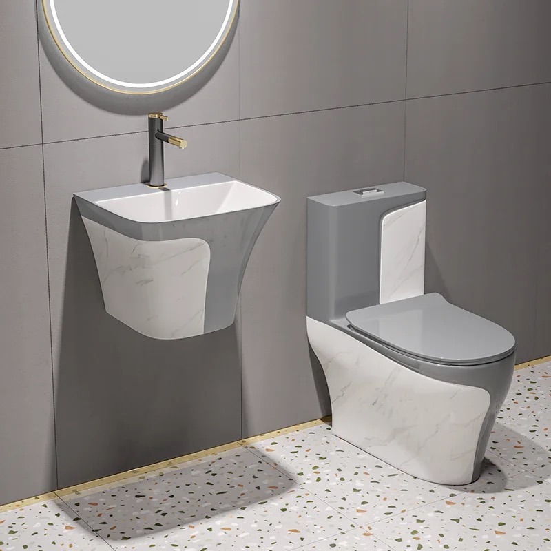 Wall hung handwash basin and one piece seating toilet complete with all accessories