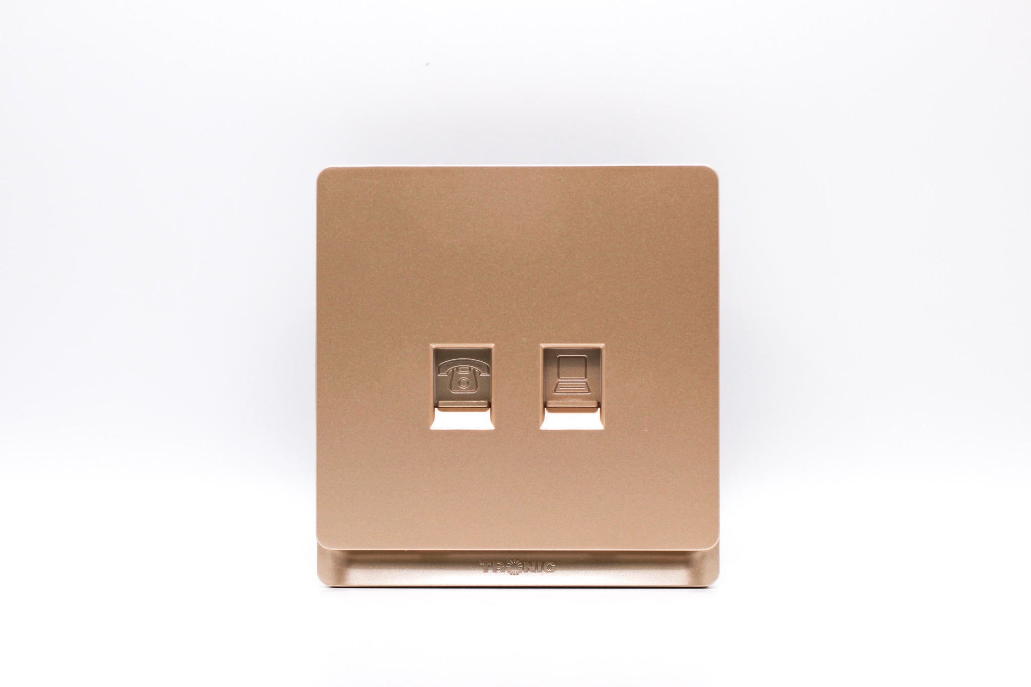 This premium range Tronic Computer and Telephone Socket in Gold provides a screwless finish, is slim, has smooth edges and has a shiny surface to fit into the modern style of ones home or office. A computer and telephone socket is a port or socket available for connection to peripherals such as output devices. Ethernet and telephone cables look fairly similar and it is not uncommon to get the two mixed up. The key difference between the two is the size of the plastic connectors on the ends of the cable.